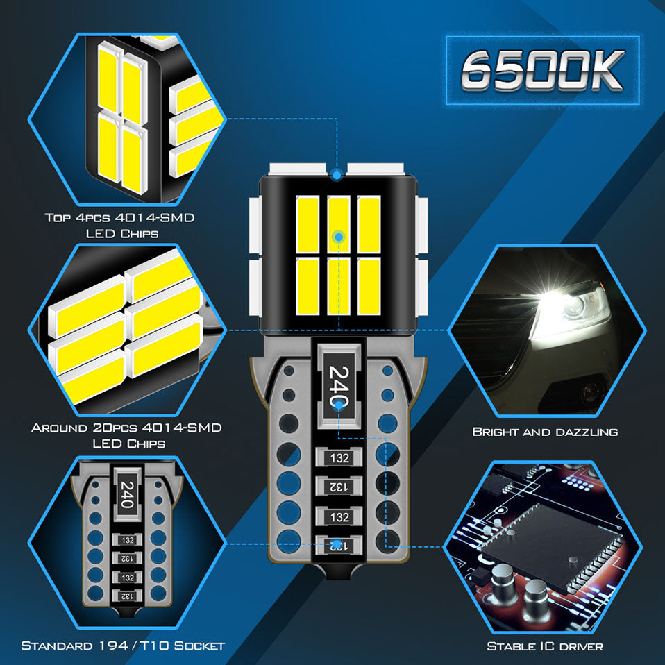 ★ 【Upgraded EMC Intelligent Driver System】-- Delicated LED driver eliminates flicker and ensures full power with very turn-on. By upgrading EMC intelligent driver, the possibility of causing error on dashboard will be reduced, easily solving flickering or error problem of most vehicle systems.