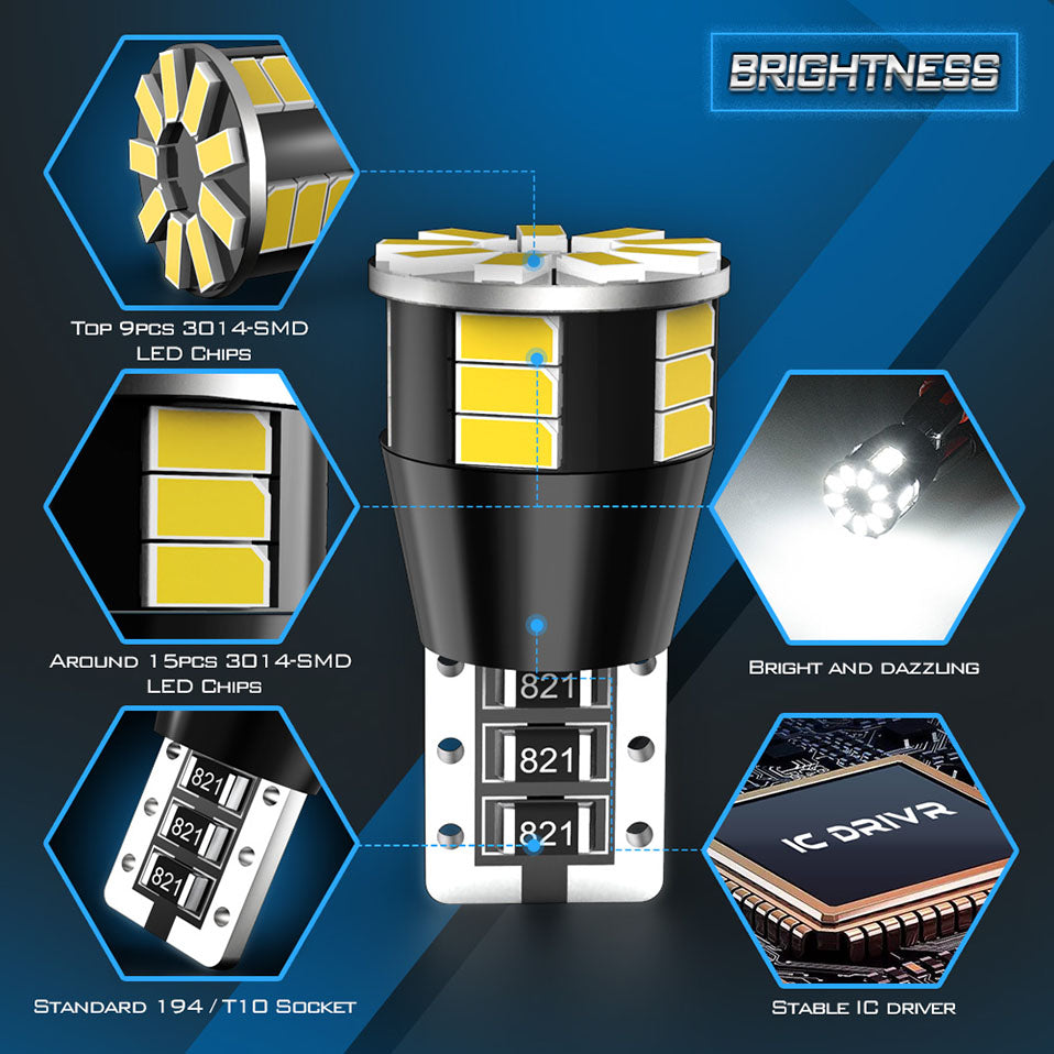 CENMOLL Wholesale T10 W5W led bulbs 3014 SMD 194 168 Led Replacement Reverse Instrument Panel Lamp Clearance Lights White Amber Blue Red 12V