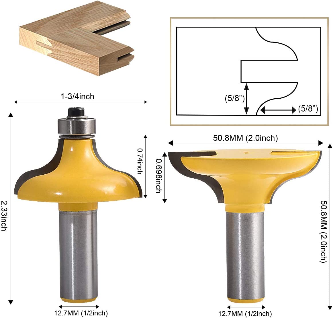 • ✅[INTRODUCTION OF ROUTER BIT]:1/2" Shank Entry Door for Long Tenons Router Bit .Provides much convenience to your daily woodworking.Cutters to slice smoothly into Teeth width producing clean, splinter free.